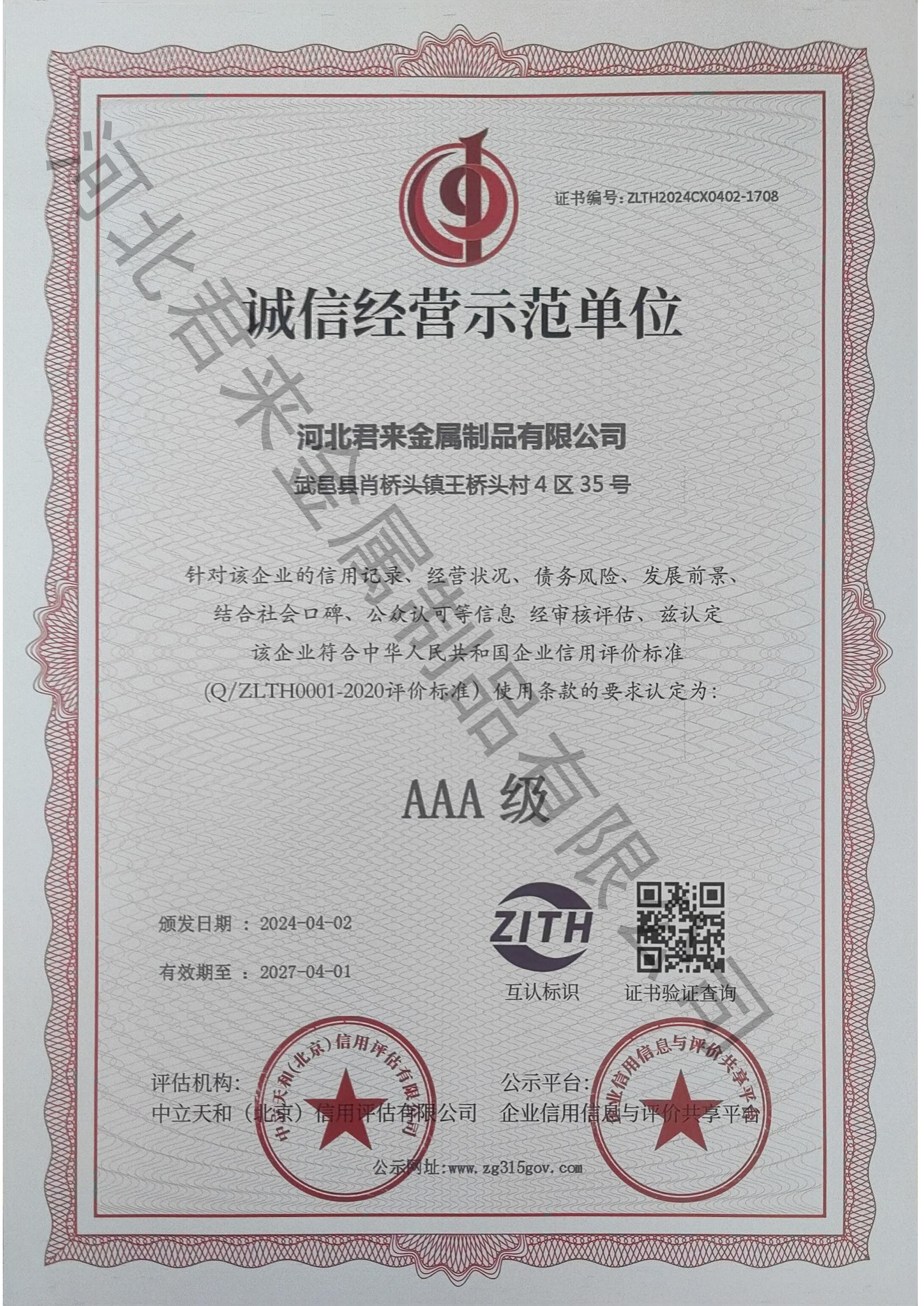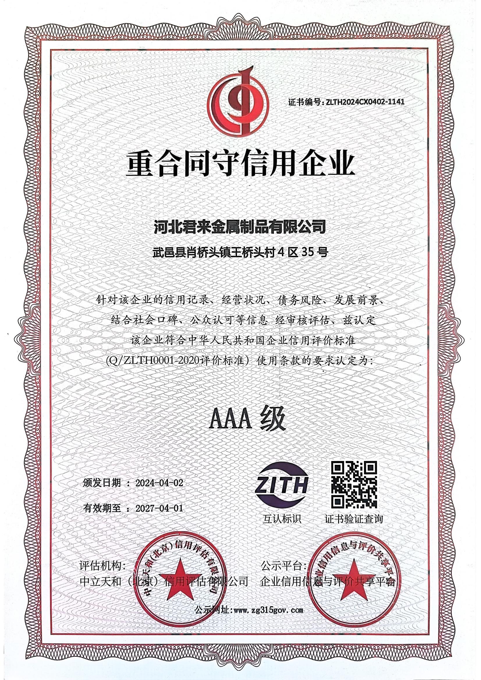 企業信用評價AAA級信用企業